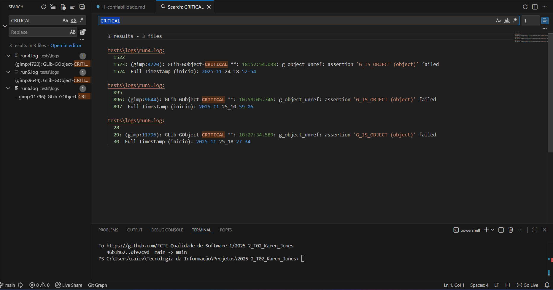| M3.1 (Q3) Taxa de Recup. Automática | Recuperabilidade | 0 restaurados / 6 crashes x 100 = 0% | 0% (Baixa Recuperabilidade) |