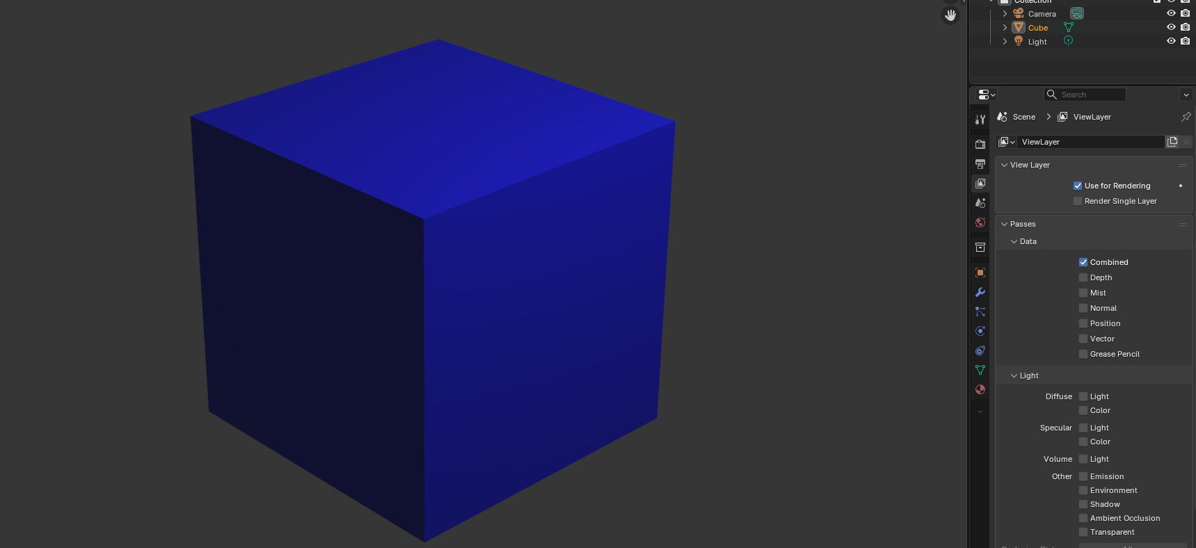 Descrição: Nesta etapa, foi utilizado o Blender para criar os cinco arquivos Baseline (Baseline_A[X].exr). Assim, o procedimento envolveu a modelagem de formas 3D e a aplicação de cores diferentes (Azul, Vermelho, Verde, Roxo e Amarelo). Contudo, o passo mais importante foi a ativação manual das camadas críticas Depth e Mist nas configurações do Blender (View Layer), o que garantiu que os arquivos contivessem os dados que o GIMP deveria preservar.