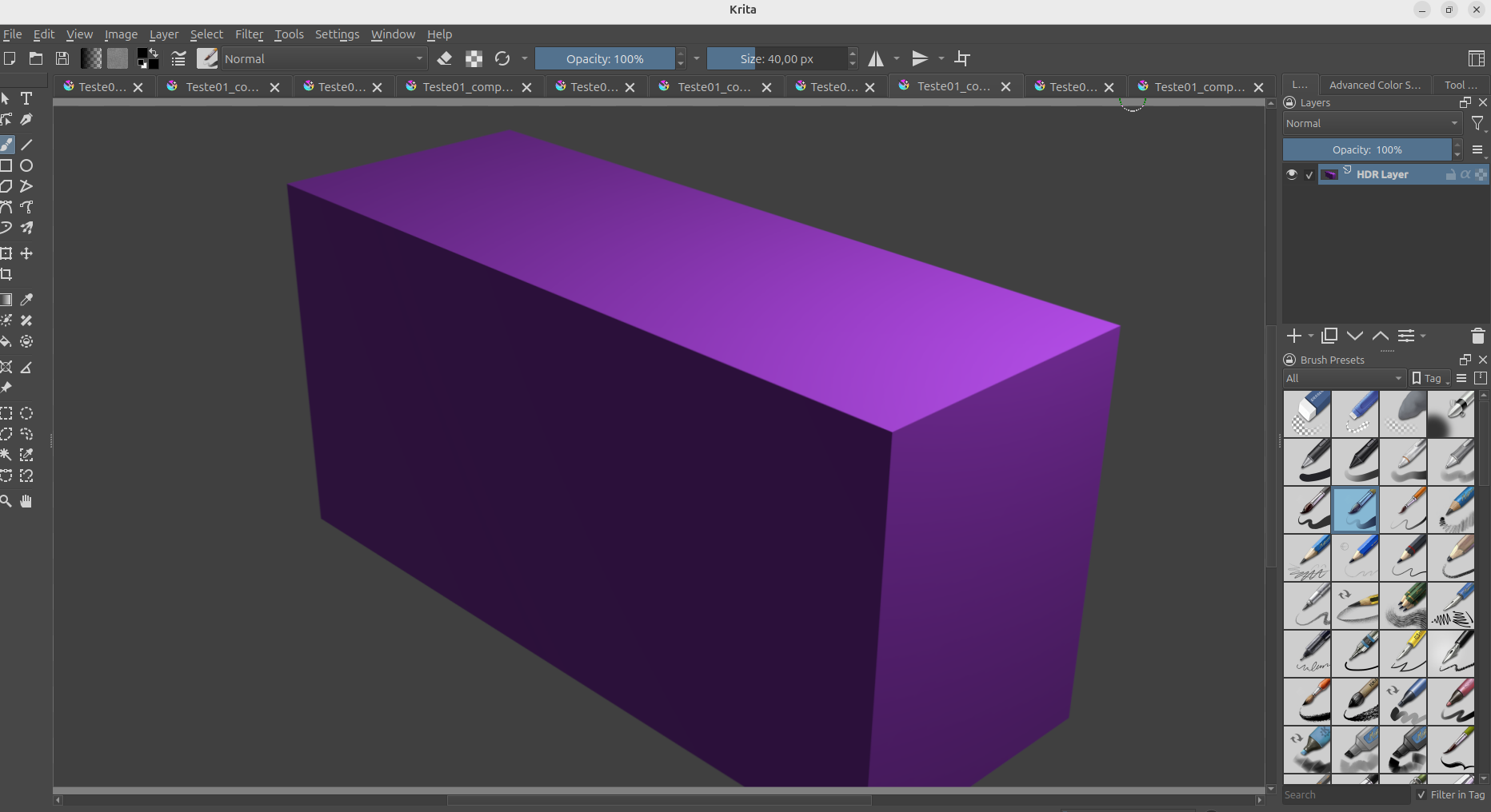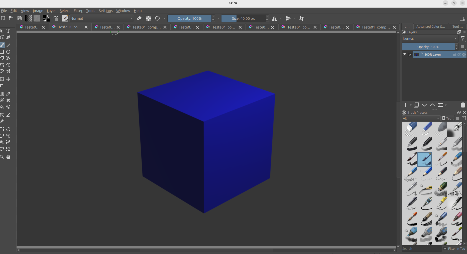 - Krita (Validador): É um software de pintura digital, utilizado como o segundo validador independente para verificar a interoperabilidade, conferindo a presença das camadas no painel Layers.