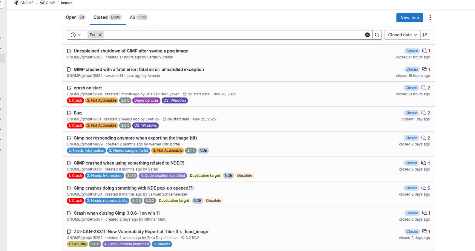 | Issues Fechadas (Resolvidas) | 1085 | Representam o volume histórico de manutenção do módulo file-exr. |